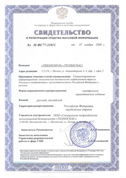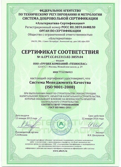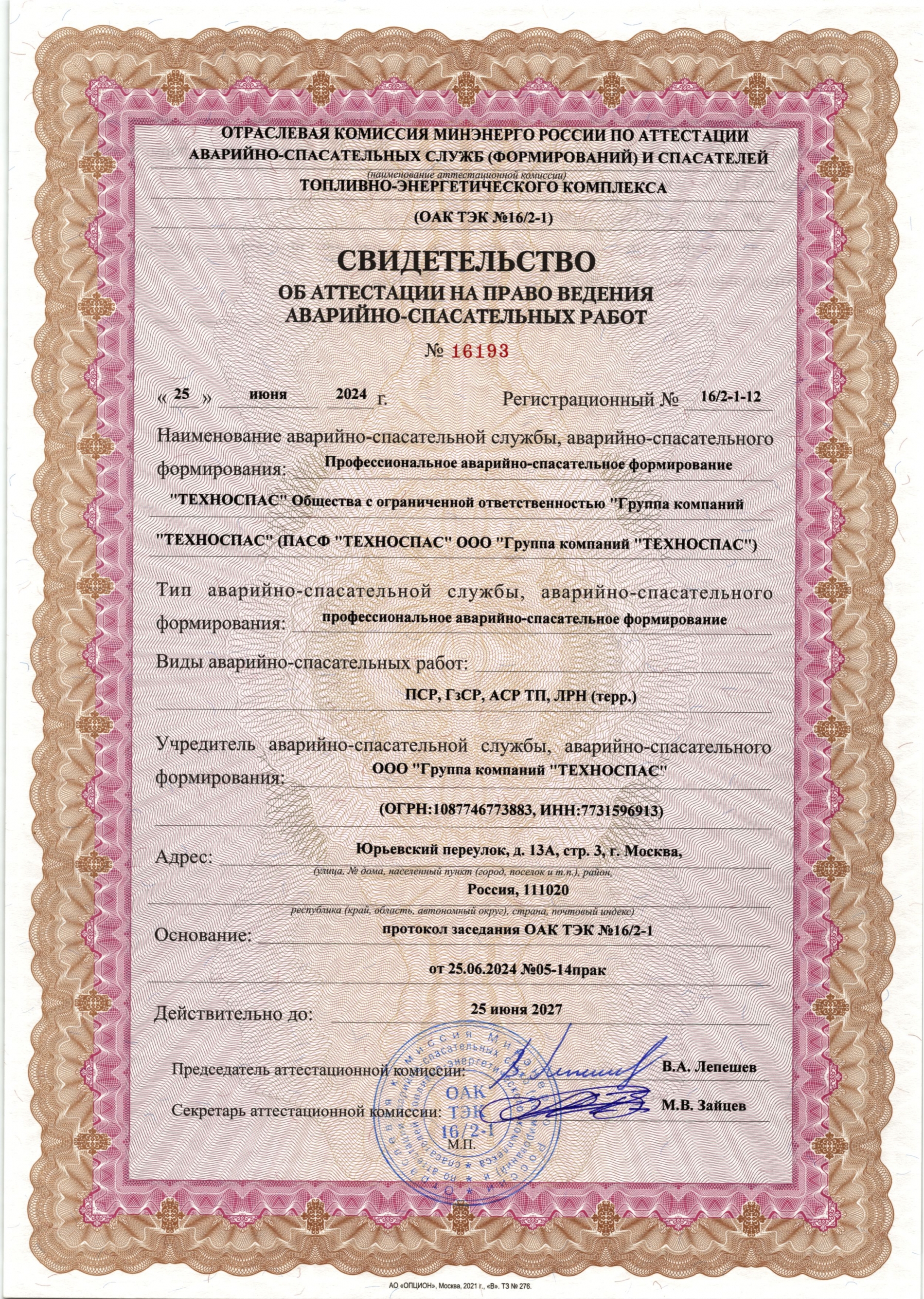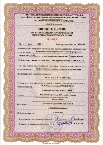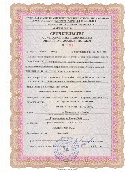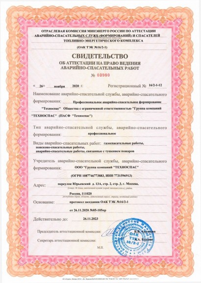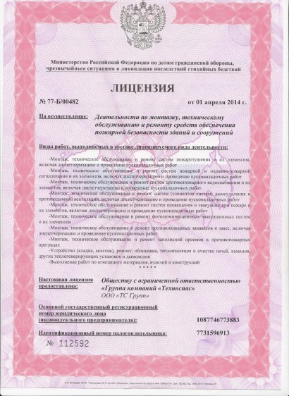 Лицензии и сертификаты «ТЕХНОСПАС»