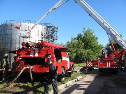 Тема учений: "Действия руководящего состава, КЧС и ПБ, НАСФ, привлеченных сил и средств при угрозе и возникновении чрезвычайной ситуации, связанной с разливом нефтепродуктов на территории мазутохранилища цеха № 218 ОАО "Калужский двигатель", 17.07.2013, г. Калуга