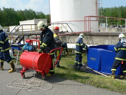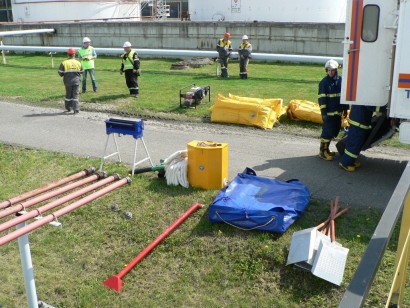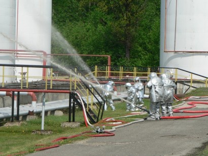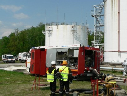 Отработка действий по локализации и ликвидации разлива нефтепродукта, а также эвакуации и помощи пострадавшим в результате ЧС, вызванной разливом и возгоранием нефтепродукта в резервуаре.