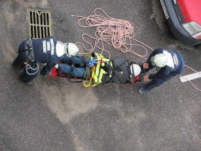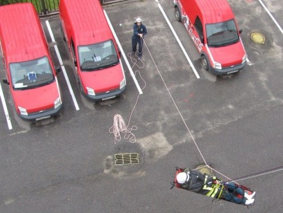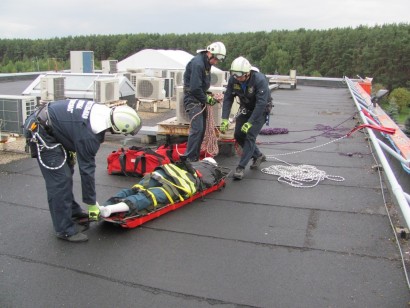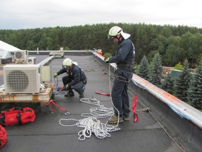 Тема учений: ПАСФ "ТЕХНОСПАС" отработал действия по эвакуации пострадавшего с крыши производственного здания, в котором произошло возгорание.