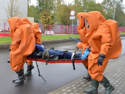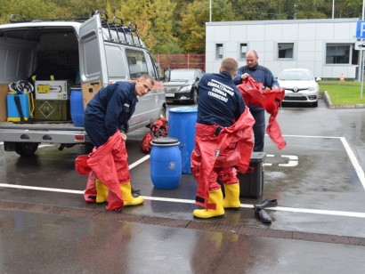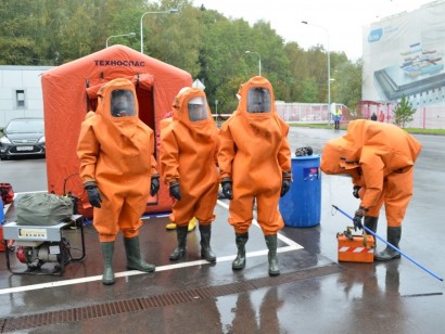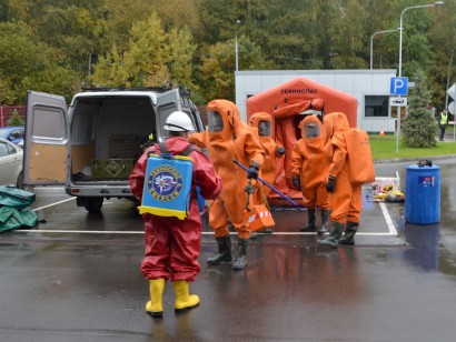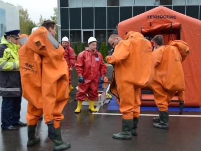 Отработка действий ПАСФ "ТЕХНОСПАС" и персонала АО "Ангстрем" при ЧС с разливом АХОВ