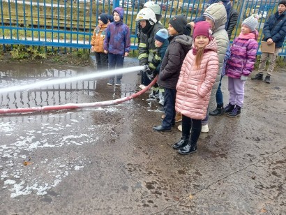 После торжественного вручения подарков и дипломов ребятам провели экскурсию в пожарно-спасательной части №1, рассказали о мерах пожарной безопасности и, конечно же, разрешили попробовать себя в роли настоящих пожарных.