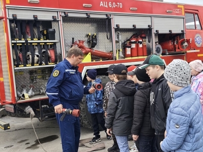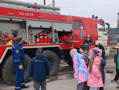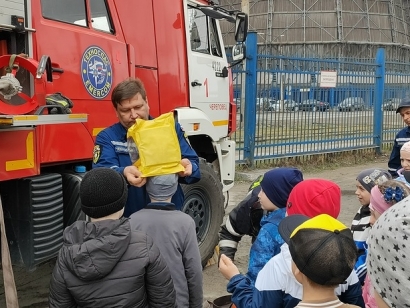 Начальник пожарно-спасательной части показал детям предметы боевой одежды и пожарно-спасательного оборудования, рассказал о том, как устроена пожарная машина и какие технологии используются для тушения пожаров. Детям разрешили побывать внутри пожарных машин, а самые смелые смогли опробовать применение средств индивидуальной защиты органов дыхания (спасательный капюшон).